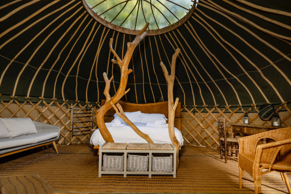 What is a yurt, you ask? Originating from Central Asia, yurts are circular tents with a wooden frame and fabric covering. Yurt stays offer a spacious and cosy environment, often equipped with real beds, furniture, and sometimes even a fireplace.